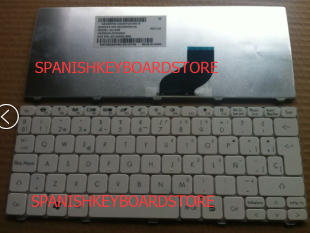 FOR GATEWAY LT21 ACER 532H D260 D255 WHITE COLOR SPANISH KEYBOARD ZE6 AEZE6P00120 9Z.N3K82.B0S